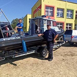 Mundurowi prezentowali policyjny sprzęt wykorzystywany do służb na akwenach powiatu radziejowskiego.